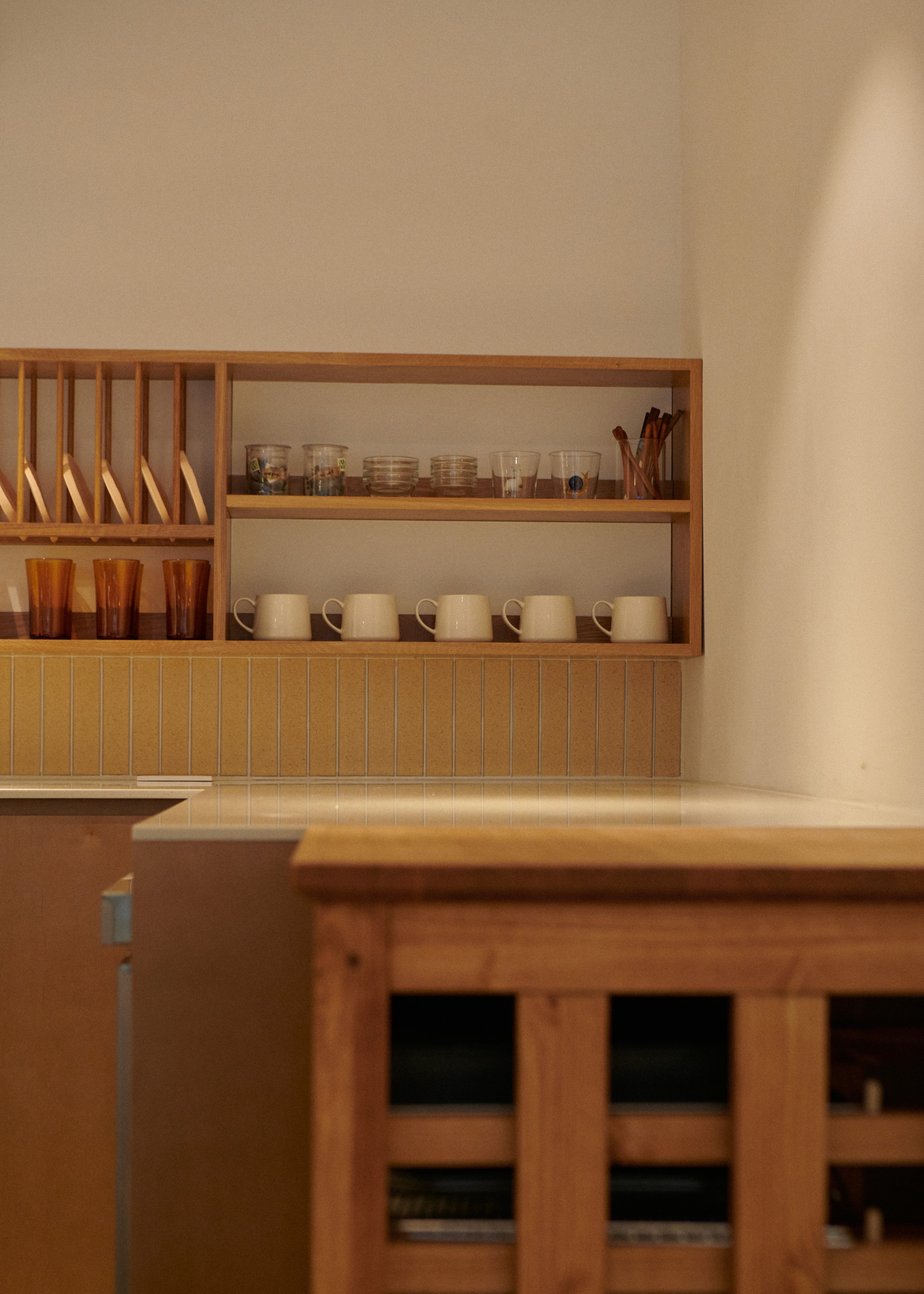 The space is centered around a soft and cozy ambiance. The furniture is designed with subtle yellow tones and natural wood, reminiscent of the savory aroma of browned butter. The goal was to provide an emotionally comfortable and private experience, like being hosted in a calm, welcoming home during a trip.