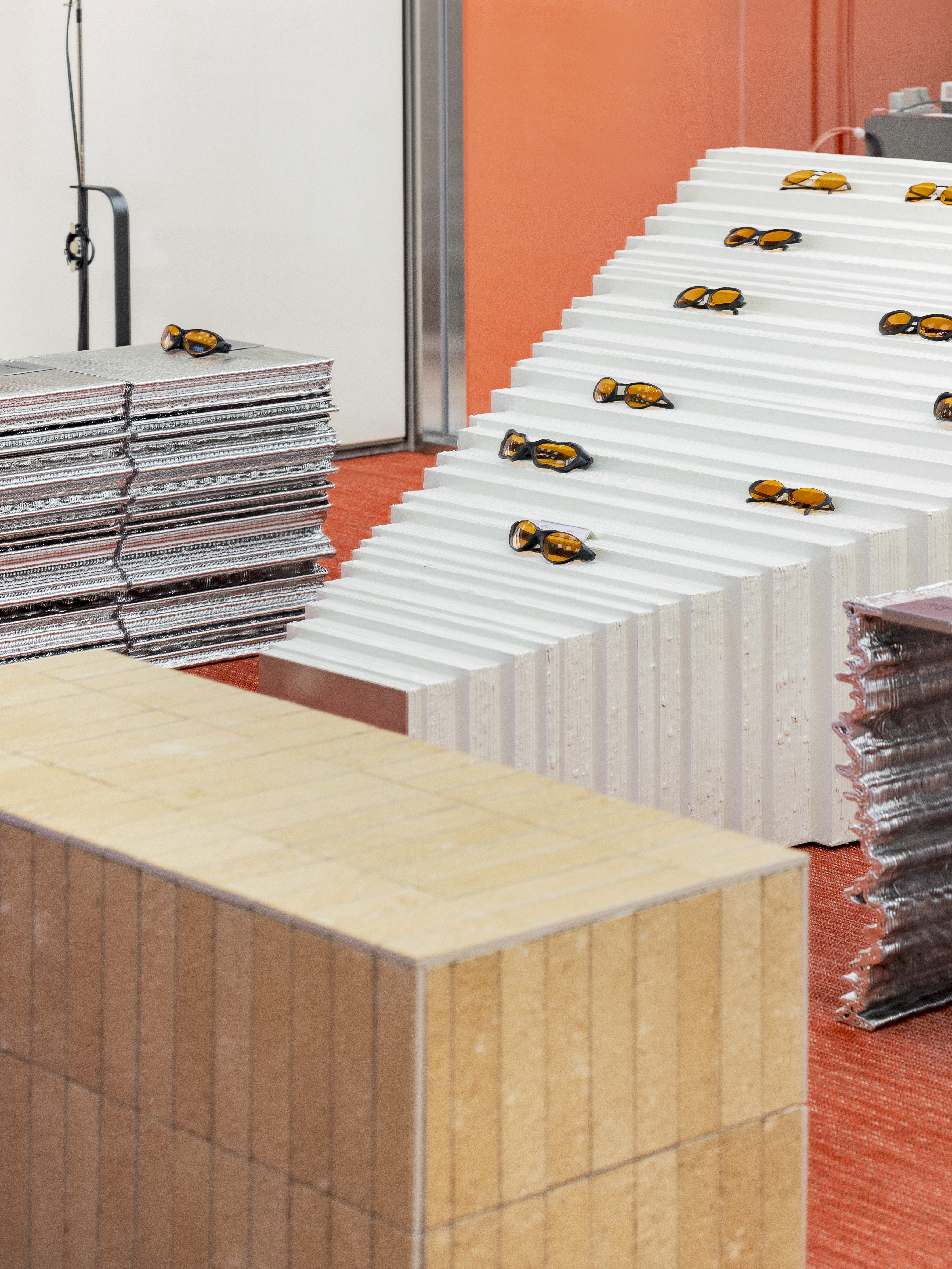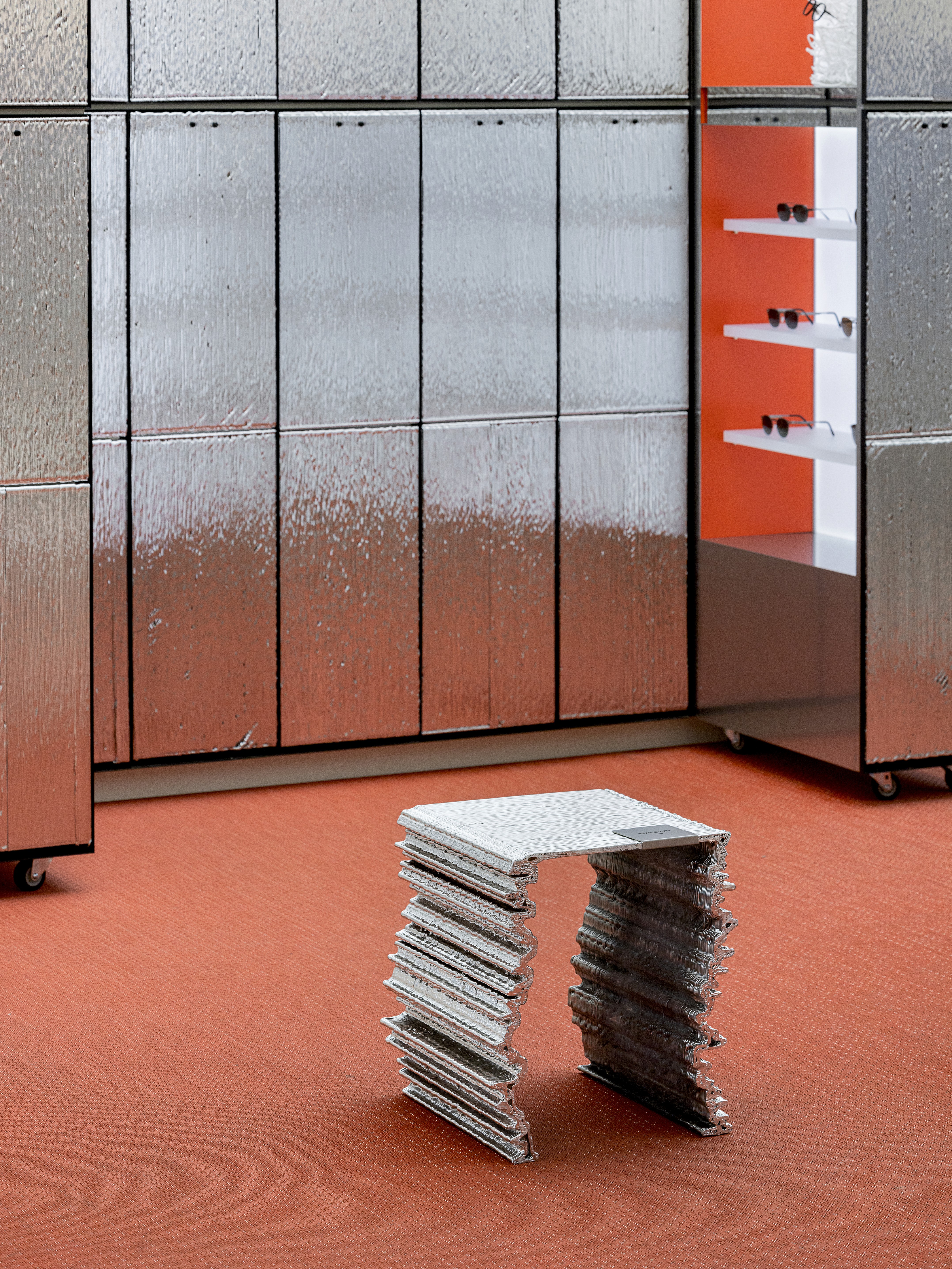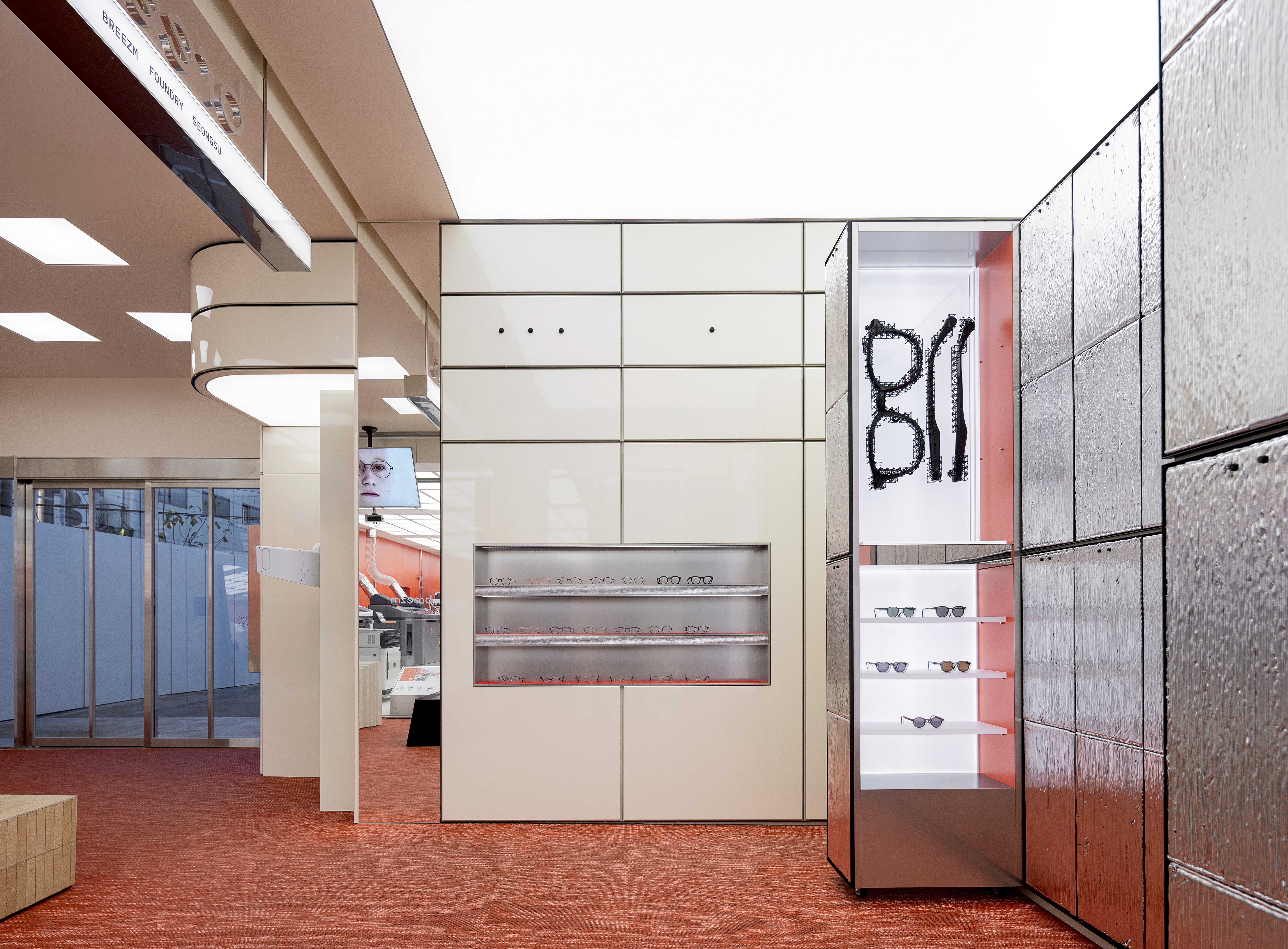 brizm’s eyewear is crafted through a process where AI analyzes facial scan data, and 3D printers create a unique pair tailored to each customer. Inspired by this precise manufacturing, we took the concept of 'a singular form born from layers' as our spatial starting point. The interior furniture, objects, and structural elements are designed with 3D printing’s layering method as a motif, allowing the process of accumulation to naturally dissolve into a visual language.