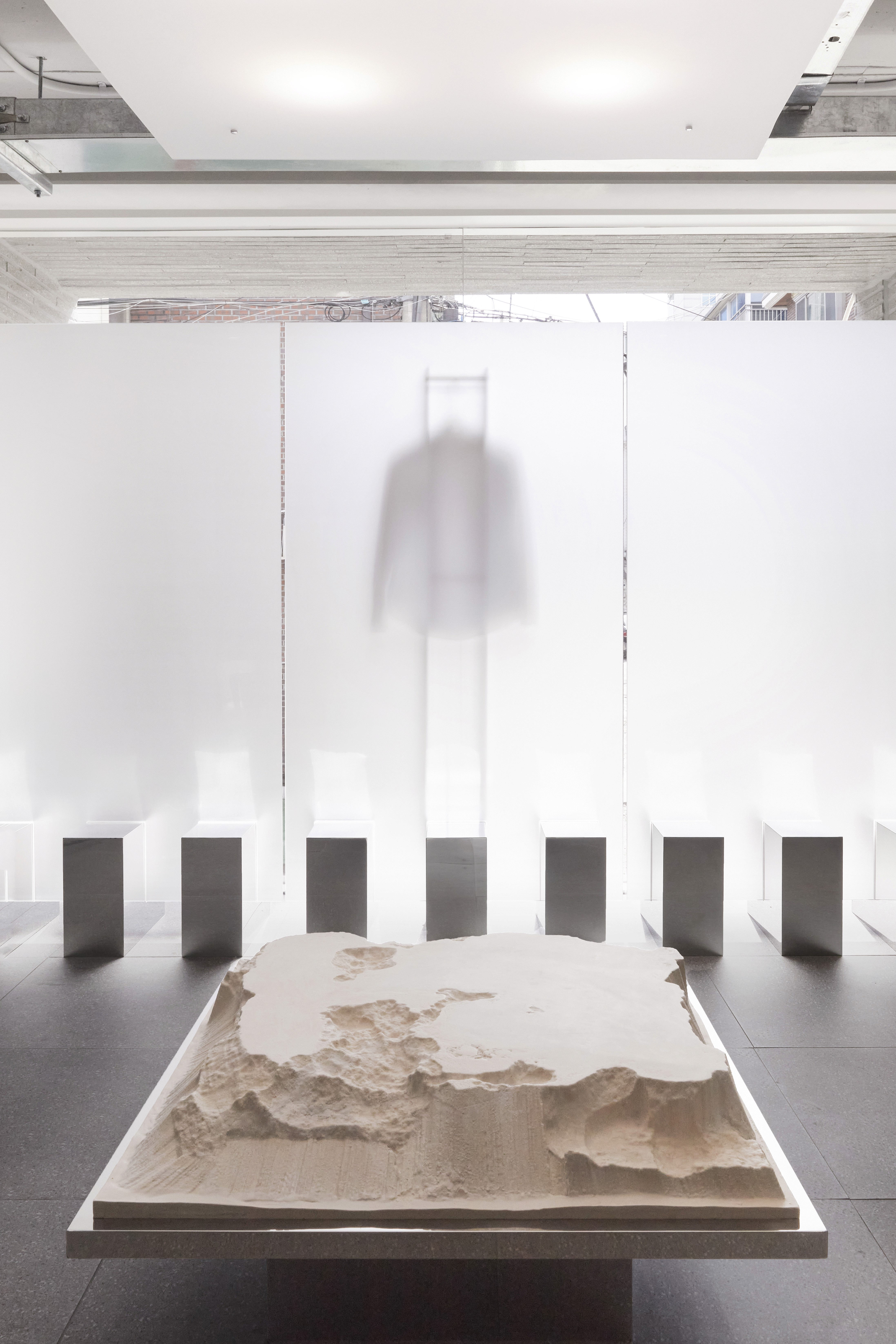 IN THE HAZE’ is a project that translates the philosophy of the delicate womenswear brand, FINNE, into a physical space. FINNE proposes clothing for oneself, free from societal standards or the male gaze. By reinterpreting the uniform-like structures of menswear, the brand highlights the independence and identity of modern women.